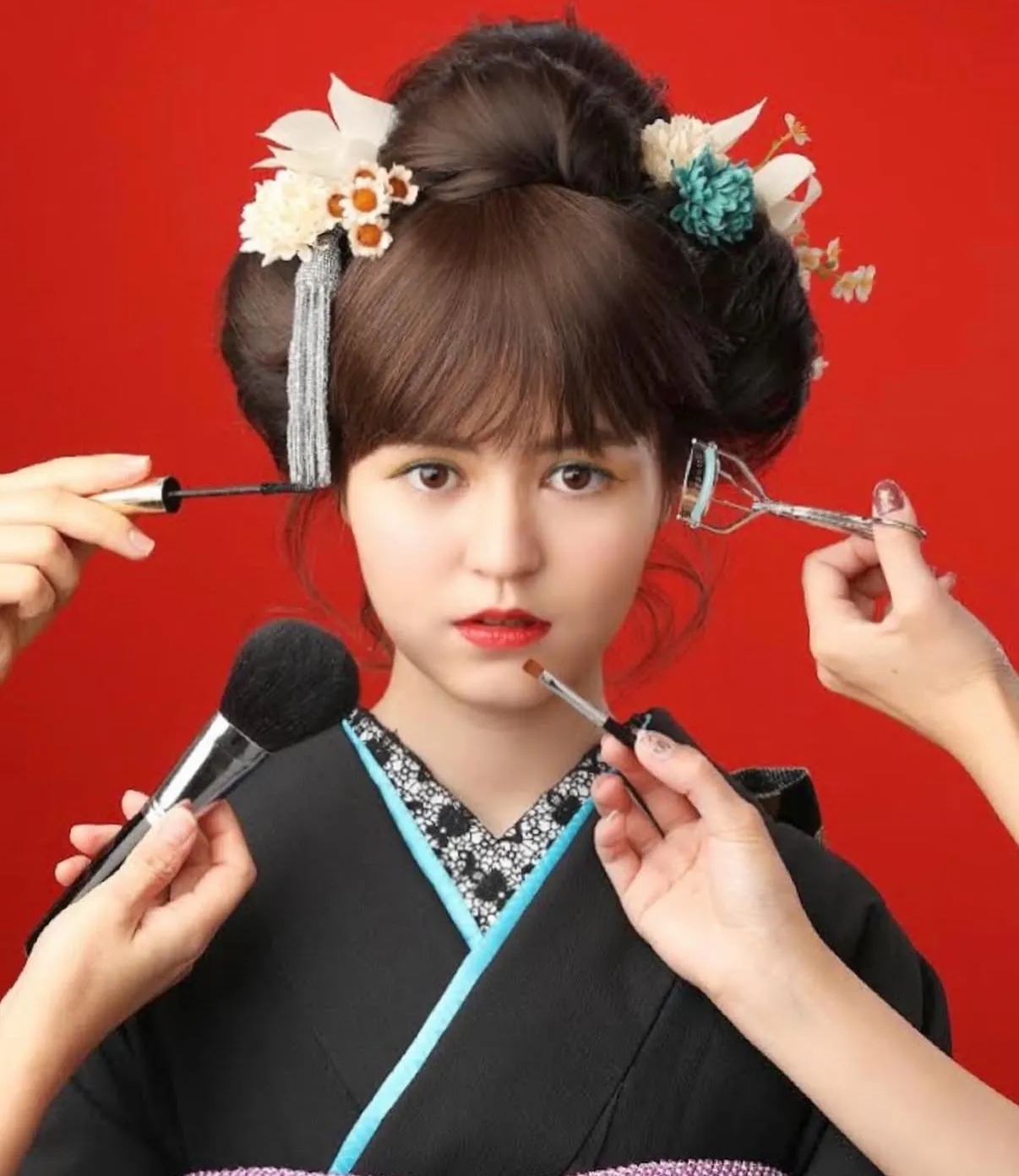 着物は、ヘアメイクによって完成度が大きく変わります。全体の調和を見ながら、その方の魅力が最も引き立つバランスを整えることを大切にしています。